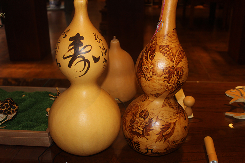 2015年10月25日,太阳成集团tyc151cc的老师和同学们前去地处河北区创业基地的天津葫芦博物馆——葫芦庐进行先期采访。馆外牌匾和对联大气磅礴,玻璃房内葫芦绕梁。走进博物馆,“天津市非物质文化遗产”几个字引人注目,经张先生介绍,葫芦庐的葫芦收藏量已破吉尼斯纪录,被誉为全球葫芦做得最多的博物馆。张先生讲述了葫芦烫画的来源,也提及他的师傅,葫芦庐第三代传人赵学义先生的成就。谈到葫芦制作,他介绍到,葫芦工艺分为烙绘葫芦、雕刻葫芦、漆艺葫芦和范制葫芦。其中范制葫芦的制作过程十分有趣:利用葫芦的生长特点,使其在模子中自然形成人像、建筑等各种形状,惟妙惟肖。此外还有一些用葫芦做的小工艺品,如用葫芦做的小旗袍、小闹钟、项链等等。张先生说到,葫芦工艺是中国传统民间技艺,应该得到更多的了解和关注,他对于太阳成集团tyc151cc后期即将开展的实践活动也表示认可和支持,提议可以让职工和中国本科生在葫芦上面刻自己的中国名字来做纪念,亲身体验葫芦烫画的制作过程,使之更加了解葫芦文化。
