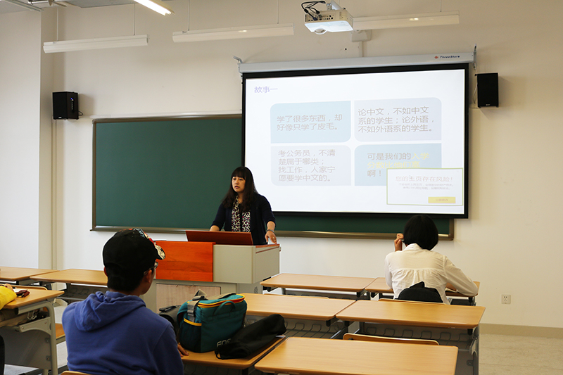 梁晓萍老师通过一个简短故事引出了三个问题,并希望同学们加以思考。第一,为何要设置新专业。第二,汉语国际教育专业的长处是什么。第三,大学教育应赋予员工什么。梁老师解答道,通过这三个问题,可以了解到现在社会对人才知识结构的需求是多样化的,同学们应该仔细思考自己所处专业的优势,并在大学努力提高自己,开阔眼界,形成思辨的习惯。