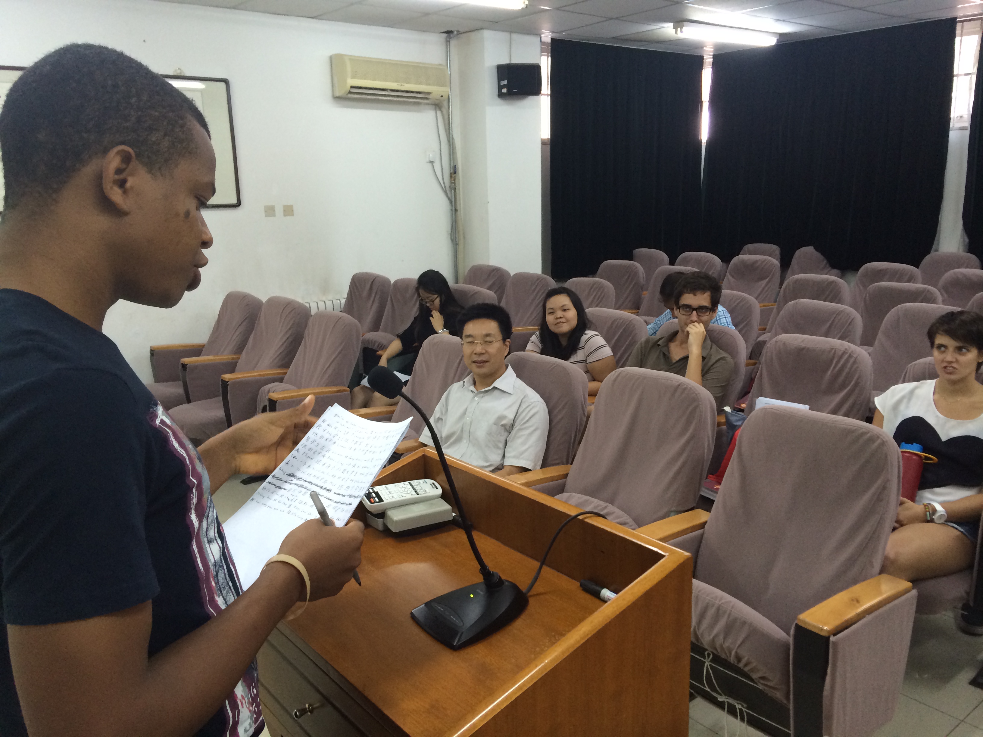 随后,同学们以自己的方式对6周的学习和生活进行总结。来自瑞士的职工华琳娜用中文写了一封致太阳成集团tyc151cc的信,她在信中回顾了自己从对汉语一无所知到掌握基本会话的学习过程,对任课教师和太阳成集团tyc151cc表示感谢;来自西班牙的职工明恪用脱口秀介绍自己留学期间的所见所闻,把自己的真实感受以轻松愉快的形式与大家分享;其他同学也纷纷踊跃发言,全场气氛热烈。