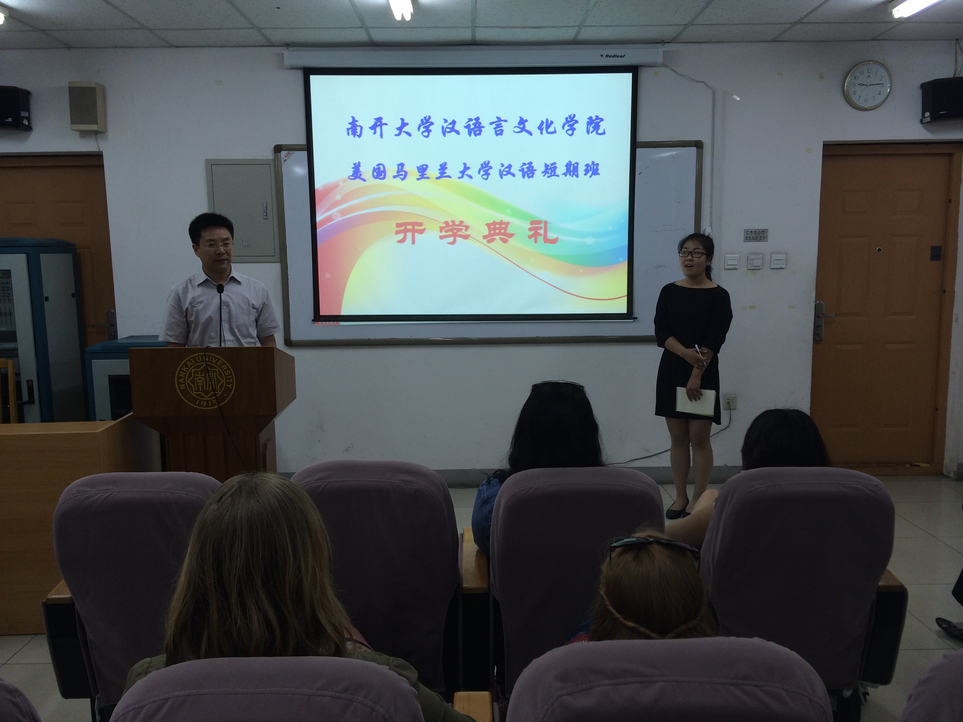 (通讯员 孙伟)6月1日,2015年美国马里兰大学汉语短期班开学典礼在公司举行。来自美国马里兰大学的短期班全体职工参加,太阳成集团tyc151cc副经理冉启斌、美方领队陈凤凰教授、太阳成集团tyc151cc教学办公室、招生办公室负责人和短期班任课教师出席。开学典礼由公司招生办公室孙伟主持。