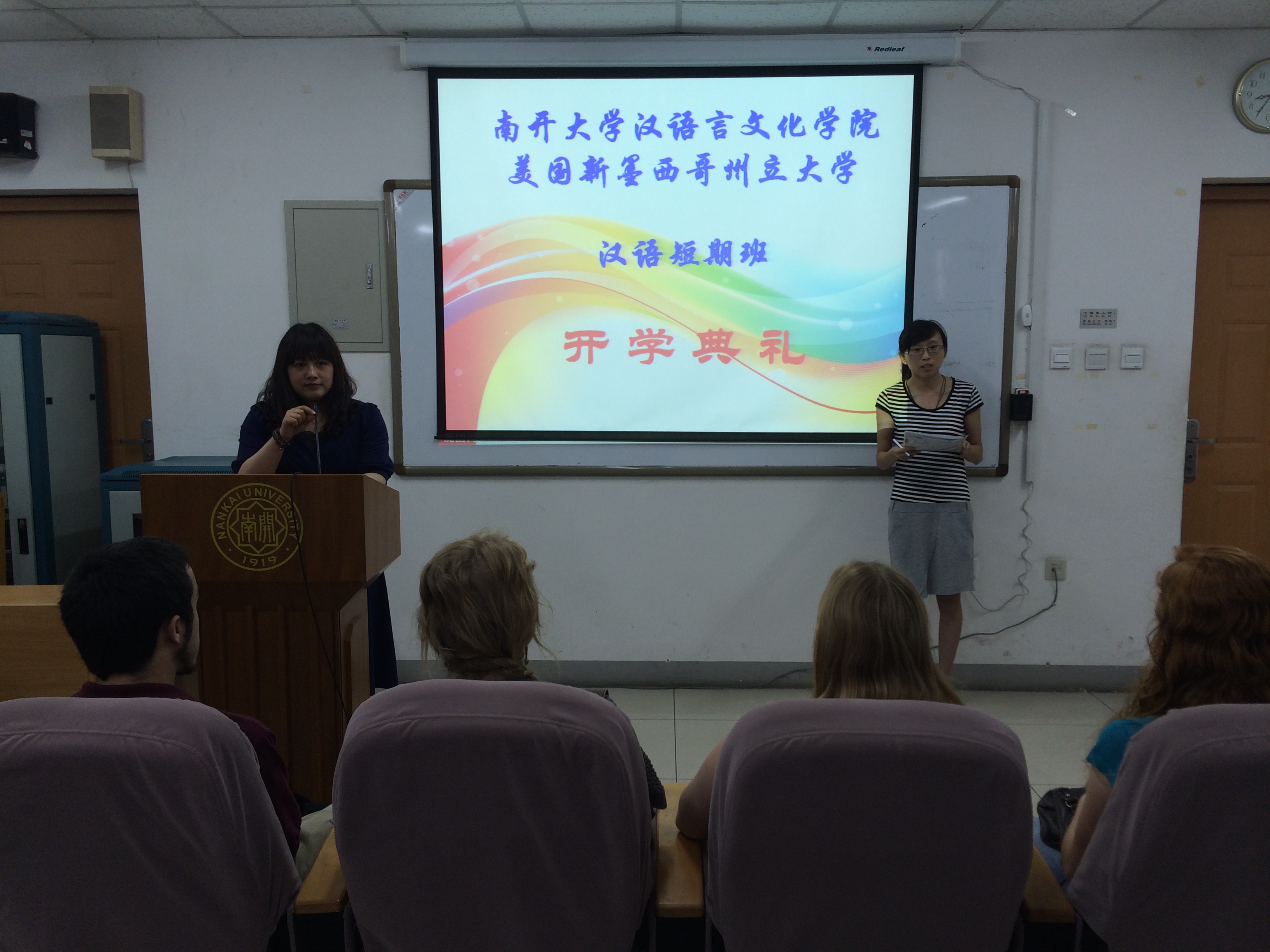 (通讯员 孙伟)6月2日,2015年美国新墨西哥州立大学汉语短期班开学典礼在公司举行。来自美国新墨西哥州立大学的短期班全体职工参加,太阳成集团tyc151cc经理助理梁晓萍、美方领队赵智慧、太阳成集团tyc151cc教学办公室、招生办公室负责人和短期班任课教师出席。开学典礼由公司招生办公室孙伟主持。