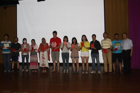 (通讯员 马嘉俪 柏采沅) 世界各国,齐聚南开,学习汉语,共享精彩。2015年6月10日下午1时,2014-2015学年第二学期职工表彰会暨结业典礼在主楼小礼堂举行,来自世界50多个国家的316位职工同学们取得了毕业证书。公司党政领导班子、部分教师代表和全体留学进修生参加典礼,进修部主任邓葵老师主持此次结业典礼。 王立新经理为典礼致辞,他希望大家学好汉语,了解中华文化,争做友好使者,做骄傲南开人,并欢迎职工常回南开母校。来自越南的刘氏玉英作为员工代表发言,她真诚的感谢公司的老师和同学们有效的教学方式和热情的帮助,使她的汉语在一年内突飞猛进,回到越南之后一定会为中越友好而努力。 接着的表彰仪式上,30位全勤员工、17为优秀员工和3位优秀班长获得了荣誉证书。同时为在本学期职工汉字听写大赛中获奖的同学颁发证书和奖品,另外,景天婕等四位班导师荣获优秀组织奖。 之后,伴随着富有班级特色,满载珍贵回忆的精彩视频,大家期待已久的结业典礼部分缓缓拉开帷幕。各个班级以汇报演出的形式,向大家展示学习的成果。初级1班同学带来的第一首歌曲合唱《朋友》给大家留下了深刻印象,短短3个月的学习,认识了可以一生一起走的朋友,可以用汉语倾情演唱出同学们自己的心声。初级2班的歌伴鼓表演《我会让你幸福的》是前半场演出的小高潮,叮咚的鼓声,欢快的节奏,动情的演唱,带动着舞台下所有观众一并挥手配合。中级1班的同学们以新颖的方式展现了自己的班级特色,来自五湖四海的职工纷纷举起自己国家的国旗,绕台环唱,将整场演出的氛围调动起来。高级1班的歌舞《最炫民族风》更是将整场演出推向高潮,班长方尧表示,我们来到中国就要入乡随俗,选择广场舞这种中国独有的健身方式,又唱又跳,让大家开心,我们最高兴。另外,高级2班的节目《呼儿嘿呦》更是别出心裁,毛主席时代歌曲的节奏配合上同学们自己改编的歌词,师生同台合唱,唱high全场。除此之外,中国文化选修课的同学们也为大家展示了一个学期的学习收获。后藤彩和小西缓奈两位同学带来的相声《学四声》精彩不断,赢得了在场老师和同学们的阵阵掌声。最后,中级2班同学带来一曲《See you again》,温暖感人,为整场演出画上了一个圆满的句号。 经过多年探索,太阳成集团tyc151cc官网逐渐形成了职工进修生教学管理的“南开模式”,即课堂教学与社会实践并重、语言教学与文化体验结合、班导师管理与自我管理结合,受到广大职工的好评。
