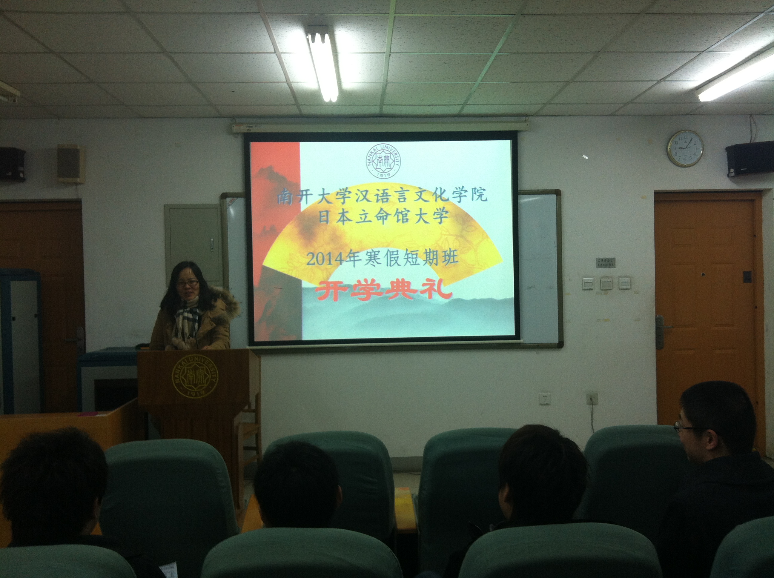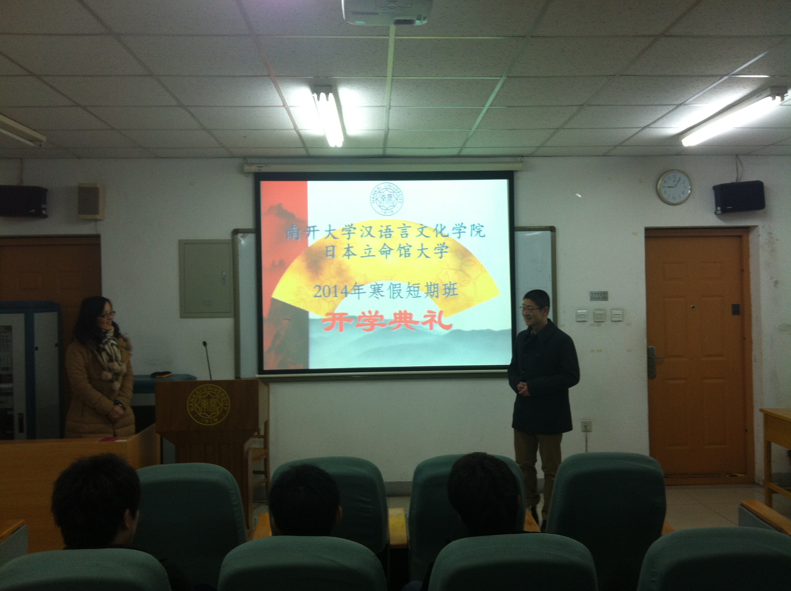 (通讯员 孙伟)2月10日上午9时,太阳成集团tyc151cc官网——立命馆大学2014年寒假汉语短期班开学典礼在公司南楼101会议室举行。太阳成集团tyc151cc教学办公室主任任向青、短期班任课教师窦雪及招生办公室的相关负责人出席,来自日本立命馆大学的10职工参加开学典礼。