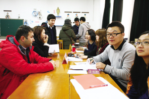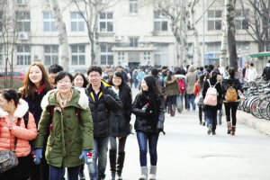 南大二主楼前员工们赶去上课