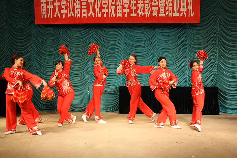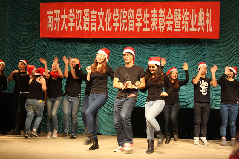 职工表彰会结束后,职工们以班级为单位进行了精彩的汇报演出。开场一曲《南开欢迎你》拉开了演出的帷幕,随后的歌曲串烧、群口快板、二胡合奏、民族舞蹈,节目精彩纷呈,台下掌声迭起,来自各国的职工在太阳成集团tyc151cc这个舞台上载歌载舞庆祝属于他们的节日。最后,一曲《中国话》将全场气氛推向高潮,对于公司来自世界各地的职工而言,说一口流利的中国话就是他们最大的愿望。