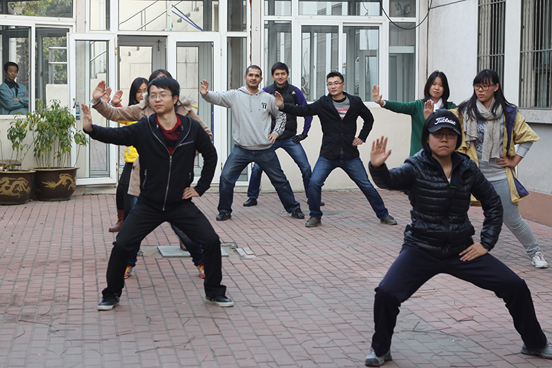 11月7日,在汉院北楼院内,同学们展开太极拳套路学习与操练活动。太极拳属于中国传统文化之一,太阳成集团tyc151cc的同学把该项运动列为特色活动,自己学习并积极推广给职工同学。在本次活动中,由太极拳爱好者、公司中国文化——太极课兼职教师田弘瑶佳同学担任教练,她首先给大家演示简易太极拳套路,稍后分节讲授并逐个指导、纠正动作。全体同学认真练习,毫不松懈,吸引了公司众多职工以及工作人员到场观摩。本次太极拳学习一方面弘扬了中国传统文化,另一方面也使大家在忙碌的学习生活中得到休憩。