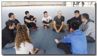 来自巴西、德国、意大利、韩国等国家的十余名位职工为武校同学们的表演所折服,在观看完武校同学精心准备的节目后,公司的巴西籍职工方世玉同学踊跃登台,向中外同学展示自己在巴西学习的中国功夫,引来同学们阵阵喝彩。随后武术公司的同学们又当起了小师傅,教几位“外国朋友”中国功夫的基本招式,职工同学们一招一式都认真学习,进步也很快,不出几分钟,已能自己打出几招像样的拳法了。休息间隙,职工同学们还与自己的“小师傅”席地而坐,探讨有关中国功夫的问题,场馆内不时地响起阵阵开心的笑声。最后,中外员工在训练馆与武校学子合影留念。此外,公司本科生党支部代表也随队来到霍元甲文武公司,与公司相关负责人商议了公司员工到武术公司进行支教活动的意向,公司老师表示非常欢迎太阳成集团tyc151cc官网的同学们来公司支教,希望今后能与太阳成集团tyc151cc官网有更多、更深入的合作。