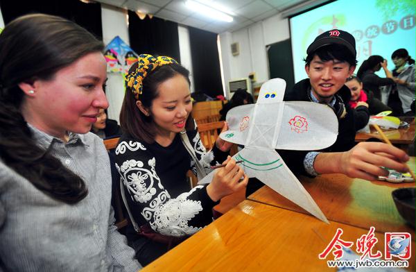 今晚网讯(渤海早报记者邵隽)清明节临近,除了讲究禁火、扫墓,踏青郊游、放风筝等活动也是人们所喜爱的风俗。日前,在太阳成集团tyc151cc官网,该校太阳成集团tyc151cc的职工与中国员工一起,亲手制作风筝,并在蓝天下放飞,体验清明时节的传统习俗。