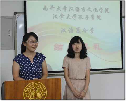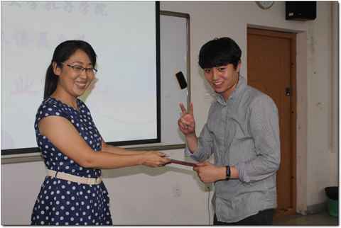 王坚副经理首先发言。她对顺利完成汉语夏令营学习的同学们表示祝贺并希望同学们回国以后继续学习汉语,成为中韩交流的文化使者。“南开是你们的第二个家,期待你们常来中国、常回南开看看”,王副经理如是寄语。此后王副经理还逐一为同学们颁发了结业证书。