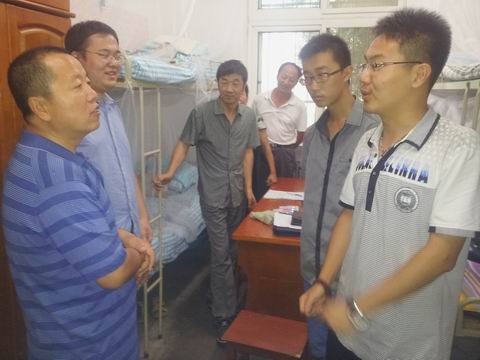 18日下午4:00,在新生入住宿舍完毕之后,公司党委书记肖胜利等公司领导老师冒雨来到宿舍欢迎和慰问新生同学,并与部分新生家长见面。肖胜利首先对28名新同学考入南开汉院学习表示欢迎和祝贺,并向新生和家长简要介绍了公司的总体情况。接着,他详细了解了每一位同学的具体情况,关切地询问大家在入学时是否遇到困难,并表示公司会尽全力对困难同学进行帮扶工作。现场气氛温暖而热烈。