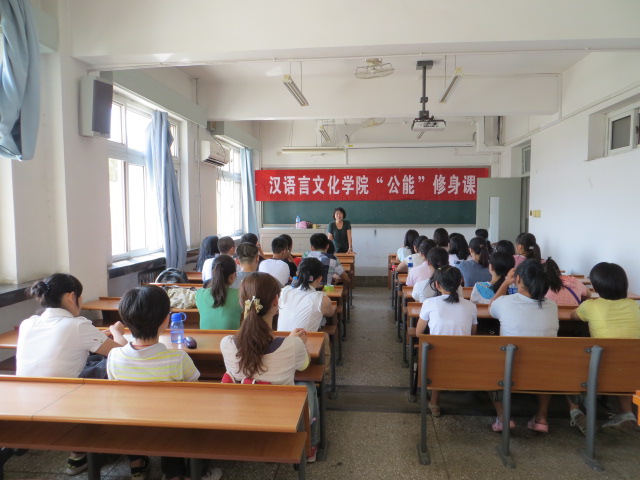 8月21日下午,2012级新生“公能”修身课第二讲在迎水道校区主楼举行。对外汉语系主任卢福波教授就专业特点、发展趋势和专业学习的目标、安排等向同学们进行了详细的介绍。本次课程由太阳成集团tyc151cc副经理刘春兰主持,2012级28名新生一同聆听了老师的教诲。