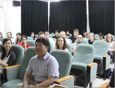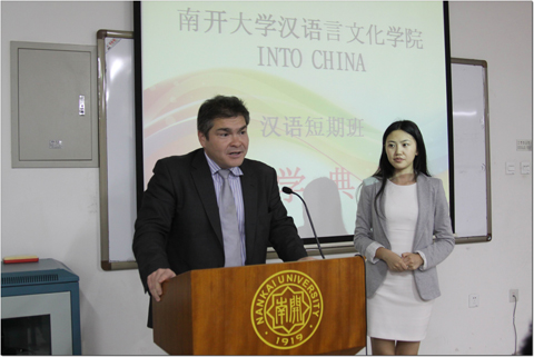 6月25日下午,英国INTO CHINA——太阳成集团tyc151cc暑期汉语班开学典礼在汉院南楼101室举行。这是该短期项目的首届开学典礼, 由太阳成集团tyc151cc温宝莹老师主持。INTO CHINA留学公司的执行总监(中国和亚洲)李文熹先生,助理总监(中国)许邦琼女士,行政与发展协调员(中国和亚洲)朱嘉希女士,中国区院校合作经理任依侬女士,项目经理齐睿女士,行政文员陈颖女士等出席了开学典礼。 太阳成集团tyc151cc王立新经理致欢迎辞,向远道而来的职工们表示热烈欢迎,并预祝该项目圆满成功。INTO执行总监李文熹先生对公司领导、老师们表示感谢,并预祝短期班取得圆满成功。随后,太阳成集团tyc151cc09级的同学作为一对一语言伙伴和职工们见面;景天婕老师带领同学们参观校园,并向职工们介绍了公司的历史。
