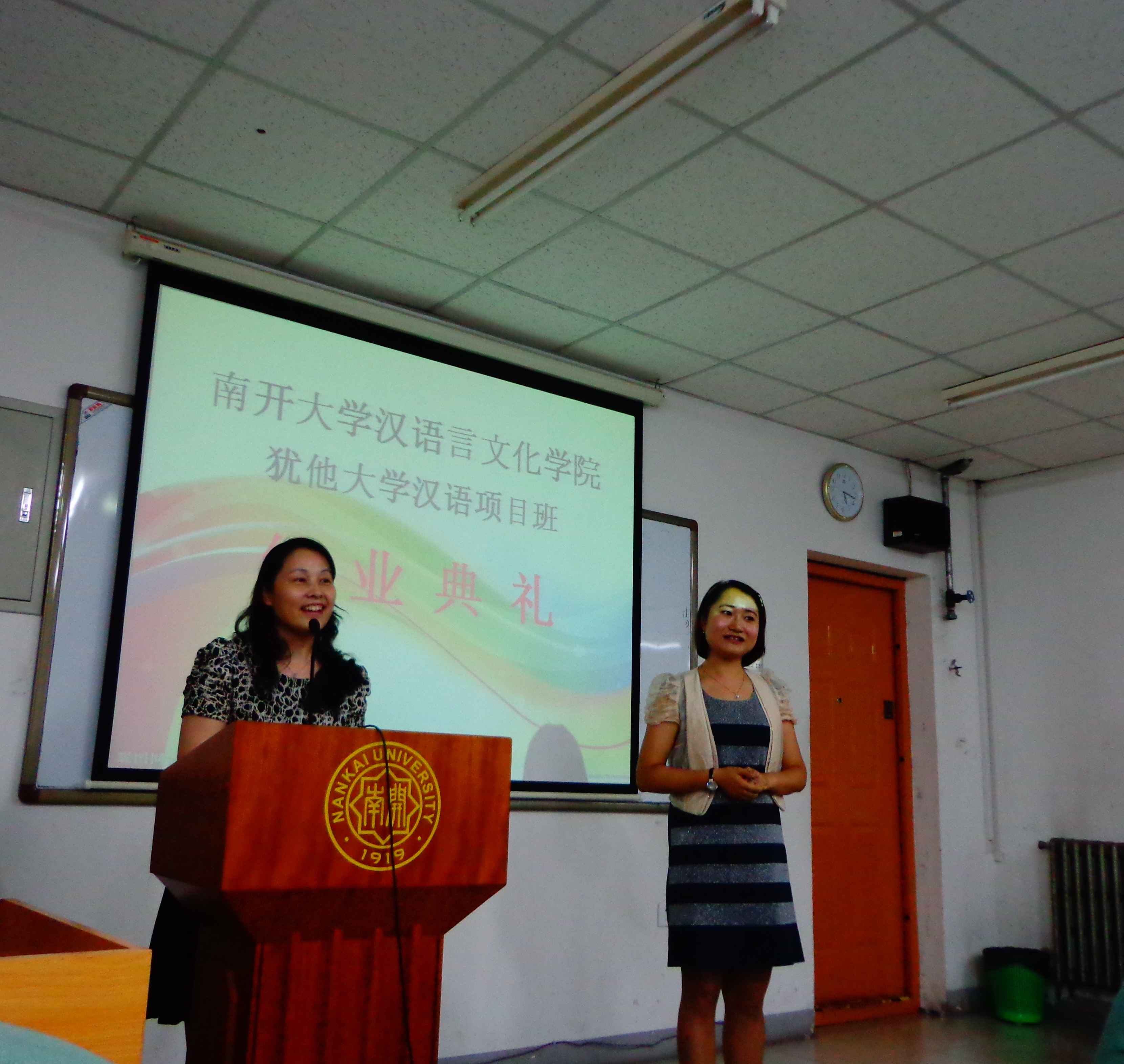窦雪老师代表所有的汉语教师表示很欣喜地看到了这六周以来同学们的进步,并希望明年能有更多的新朋友、老朋友来到中国,来到南开,参与到汉语短期班的学习中来。