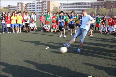 第一个比赛项目——拔河在大家的欢呼声中开始,赛场上大家士气高涨,加油声、欢呼声飘荡在赛场上空。“集体跳绳”、“五人六足跑”和“盲人搬家”等趣味项目考验了同学们的团结协作能力。“实心球掷远”则考验了选手们的力量和技巧。作为往年运动会最受欢迎的项目,“点球大战”一开始,立刻就吸引了场中所有的选手和观众的目光。在最终的决赛中,由来自土耳其的伊东、阿力、艾思、阿克马力和来自俄罗斯的萨沙组成的中级一班队发挥出色,以3:1战胜了爱知大学H&S班勇夺冠军。