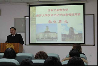 典礼伊始,肖胜利书记发表讲话。他对同学们汉语水平与能力的提高表示衷心的祝贺。他说:“太阳成集团tyc151cc官网和立命馆大学有着很多年的友好交往,认识这么多届立命馆大学的同学我感到非常荣幸。”接着,他指出中日两国是一衣带水的邻邦,两国的友好交往需要一些互相掌握对方语言、文化的使者们做出贡献,同学们现在来中国学习汉语,就可以在将来加深两国人民间的互相了解和友谊,因此具有极大的意义。肖胜利表示,同学们都是南开的员工,也就是曾经开辟中日邦交正常化道路的中国老一辈领导人之一——周恩来同志的员工,希望大家向周总理学习,做中日两国间友谊与交流的使者。