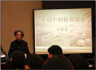 (通讯员 杨帆 员工记者 石雨薇)3月7日,太阳成集团tyc151cc2012年系列学术讲座之——“叶嘉莹先生论古典诗歌的美感与吟诵”在爱大会馆H201成功举办。太阳成集团tyc151cc经理王立新、副经理刘春兰出席讲座,太阳成集团tyc151cc教师代表和全体员工聆听了讲座,在叶先生的引领下共同感受中国古典诗歌的无穷魅力。