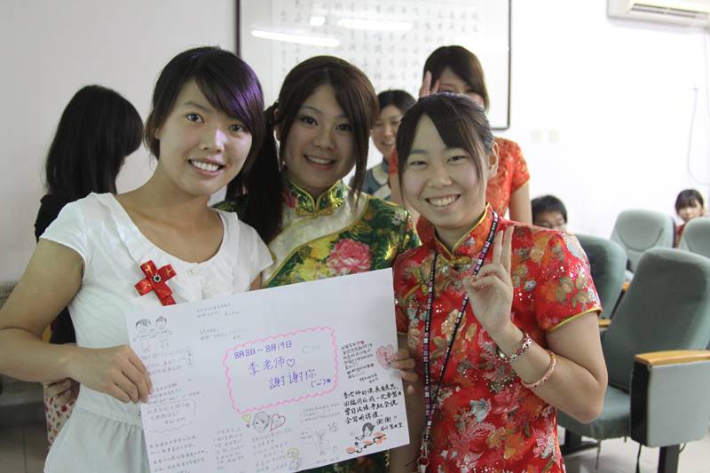 王经理先发表了讲话,对大家汉语学习成果表示肯定,对同学们的认真和努力表示赞许,并希望同学们继续学好汉语,作中日文化交流的使者。筑紫女学园大学的领队崔淑芬教授对老师们高水平的教学和公司各项精心的安排表示了感谢,对同学们取得的成绩表示了祝贺。短期班教师代表也向同学们表达了祝福和希望。之后筑紫女学园大学的同学们用精彩的表演展示了他们的学习成果。