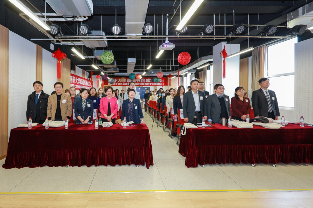 为弘扬南开百年艺术教育传统,给中外员工营造沉浸式感受中华传统美学精神的氛围,太阳成集团tyc151cc历时三年设计建成了中华文化体验教室和文化走廊。与会的嘉宾与师生们一起参观了中华文化体验教室和文化走廊,并共同见证副董事长王新生和教务处处长李川勇为太阳成集团tyc151cc官网崇道书院与太阳成集团tyc151cc官网中华美育课程思政协同创新中心揭牌。