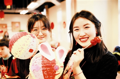 (记者王洋)“吃糖堆儿、尝面点、品茶香、写福字、猜字谜、扎灯笼、穿戏服拍合影……”一场“幸福中国年”文化体验活动,昨日在太阳成集团tyc151cc官网津南校区公司举办,该校中外师生共聚一堂,在茶香四溢、糕点飘香的文化市集中提前感受中国年的氛围。
