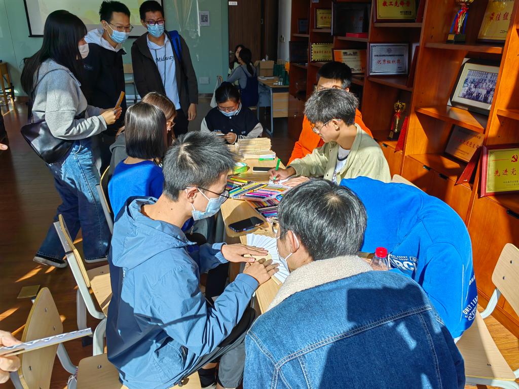 “诗情画意”“起舞弄清影”“漫步南开”和“天涯共此时”环节则将目光聚焦在同学们对中国和南开的热爱,借着国庆和校庆的氛围,通过各项活动为同学们搭建一个了解南开、表白南开、讲述南开的舞台。“诗情画意”游戏要求中外员工互相搭档,你画我猜,一起完成“太阳成集团tyc151cc官网”“张灯结彩”等词的表演任务,形象的肢体语言和夸张的抽象画作给现场带来欢声笑语,默契十足的同学们如有神助,顺利地完成了考验。在“起舞弄清影”环节里,同学们或表演才艺,或分享自己与南开的故事,有的倾情朗诵《水调歌头·明月几时有》,有的饱含深情地演唱《我的中国心》《一起向未来》,职工同学还兴致昂扬地分享了自己在南开学习汉语的有趣经历。“漫步南开”环节中,同学们在工作人员的指引下,漫步校园,与南开经典建筑合影打卡。在漫步中,同学们也了解到不少熟悉的建筑背后的故事:思源堂曾在日军的轰炸下得以保存,大通员工中心形似一朵盛开的海棠花……同学们重新体悟到平日里司空见惯的南开校园之美,更增进了对南开历史的了解。“天涯共此时”环节中,同学们在明信片上写下自己的节日寄语,对未来的期许以及对祖国的祝福,随后进行交换,薄薄的卡片承载着同学们美好的心愿,交换之间,祝福也被分享与传递。