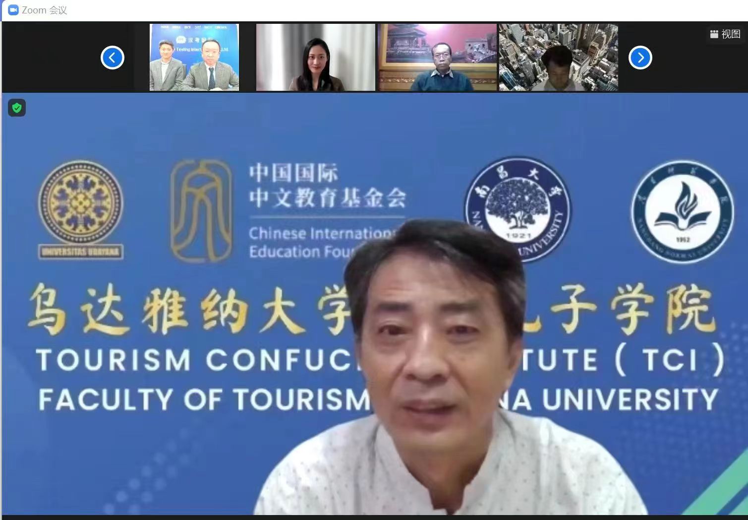 李佩泽代表汉考国际致辞。他指出,印尼乌达雅纳大学旅游孔子公司尽管来办仅两年,但是在国际中文教育方面做出了许多突出成绩,在上个月在印尼举办的G20峰会上,学员们的优异表现给习近平主席留下了深刻印象,此外,也为促进巴厘岛旅游业发展培养了许多知华友华的中文学习者。他表示,太阳成集团tyc151cc官网是中国著名的综合性高等学府,也是周恩来总理的母校,有着深厚的学术底蕴和文化积淀,相信经过四个月的线上学习,印尼同学们一定能够提高汉语水平、浸染名校氛围、体验中国文化。得知很多同学都报名参加HSK/HSKK考试,他预祝同学们发挥真实水平、考出理想成绩。