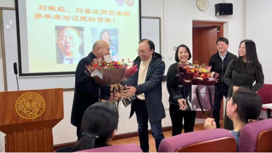 荣休仪式简朴温馨,在场职工促膝相谈、气氛热烈。通过此次活动,全体职工都感觉又经历了一次精神上的洗礼,坚定了立足本岗、立德树人、讲好中国故事的信念。新教师都表示要学习老教师的奉献精神,积极投身到教学和科研工作中去。