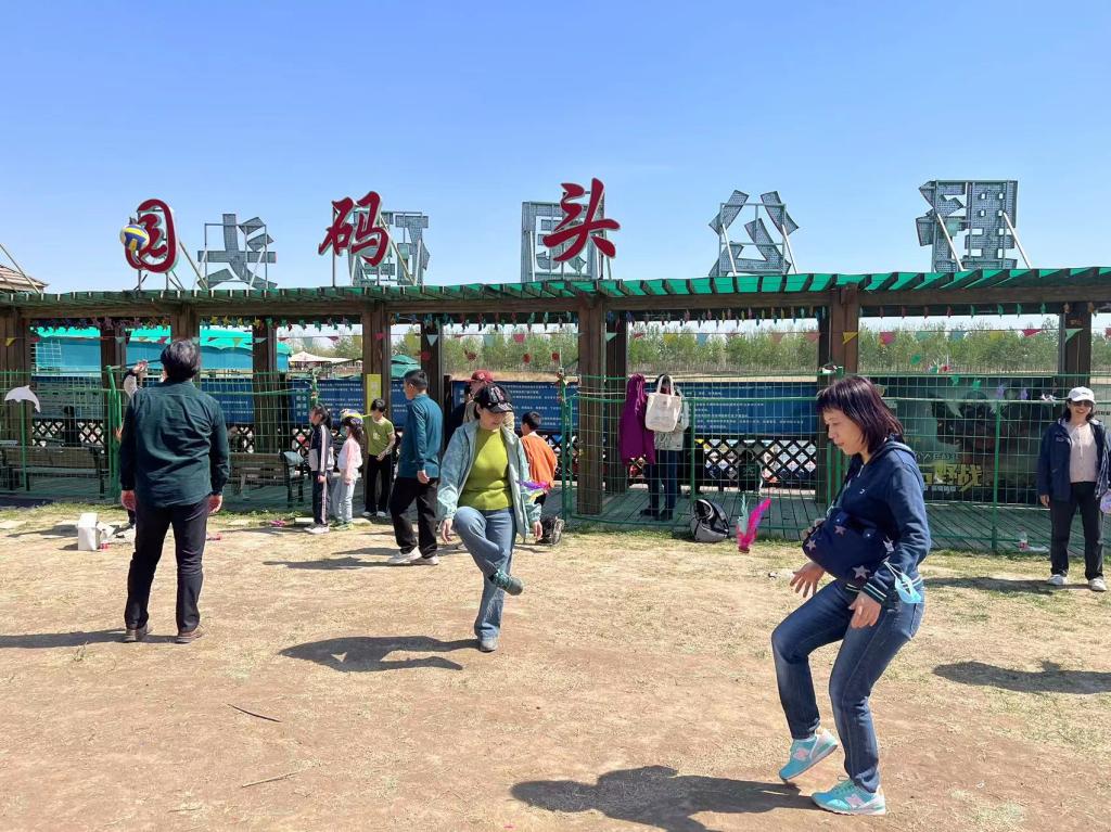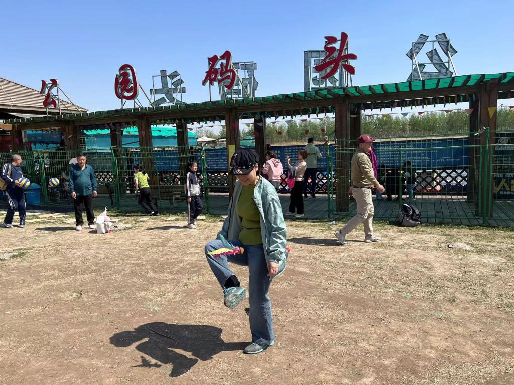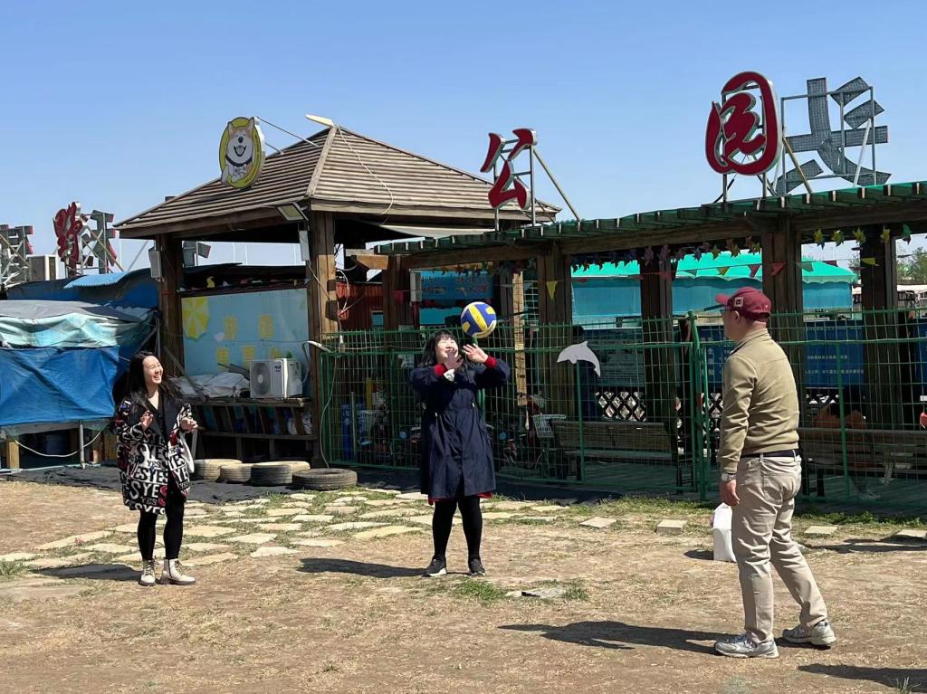采摘结束后,浏览了北辰区郊野公园,在公园内开始了气排球和踢毽子比赛,许多老师第一次接触气排球,气排球重量轻、质地软,易控制……毽子像蝴蝶一样空中翩翩起舞…..