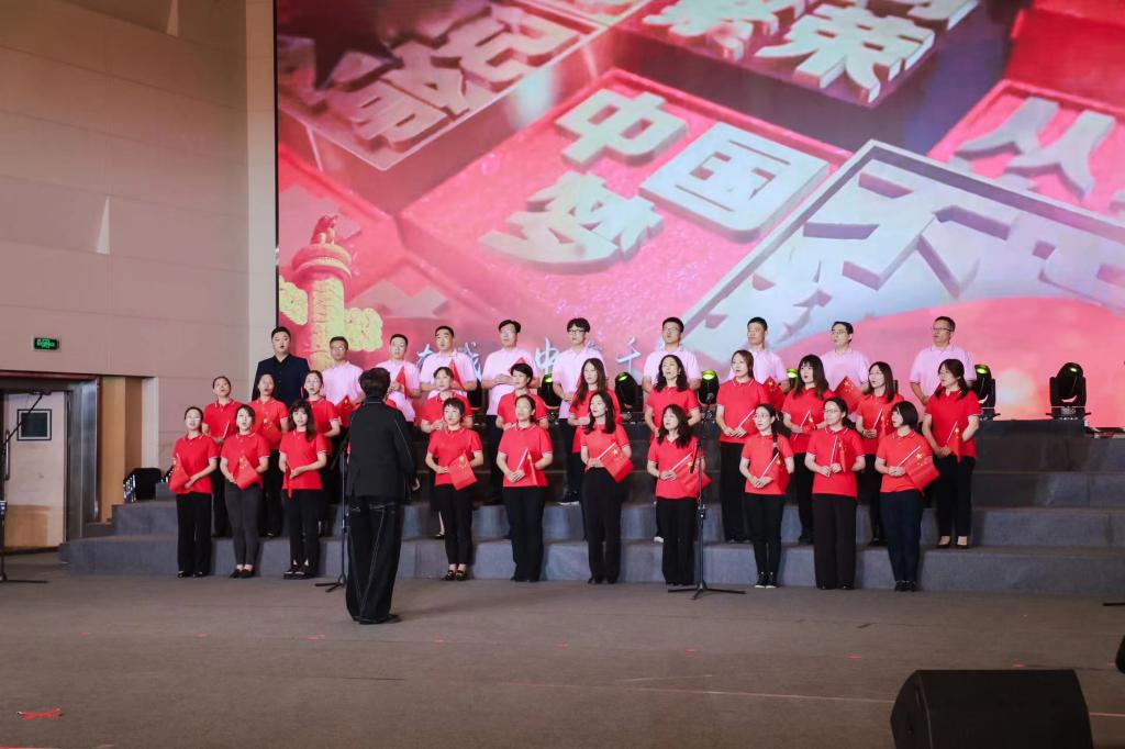 热烈隆重的舞台背景,老师们整齐的服装、和谐的声音、饱满的演唱状态,展现了公司的风采和力量。