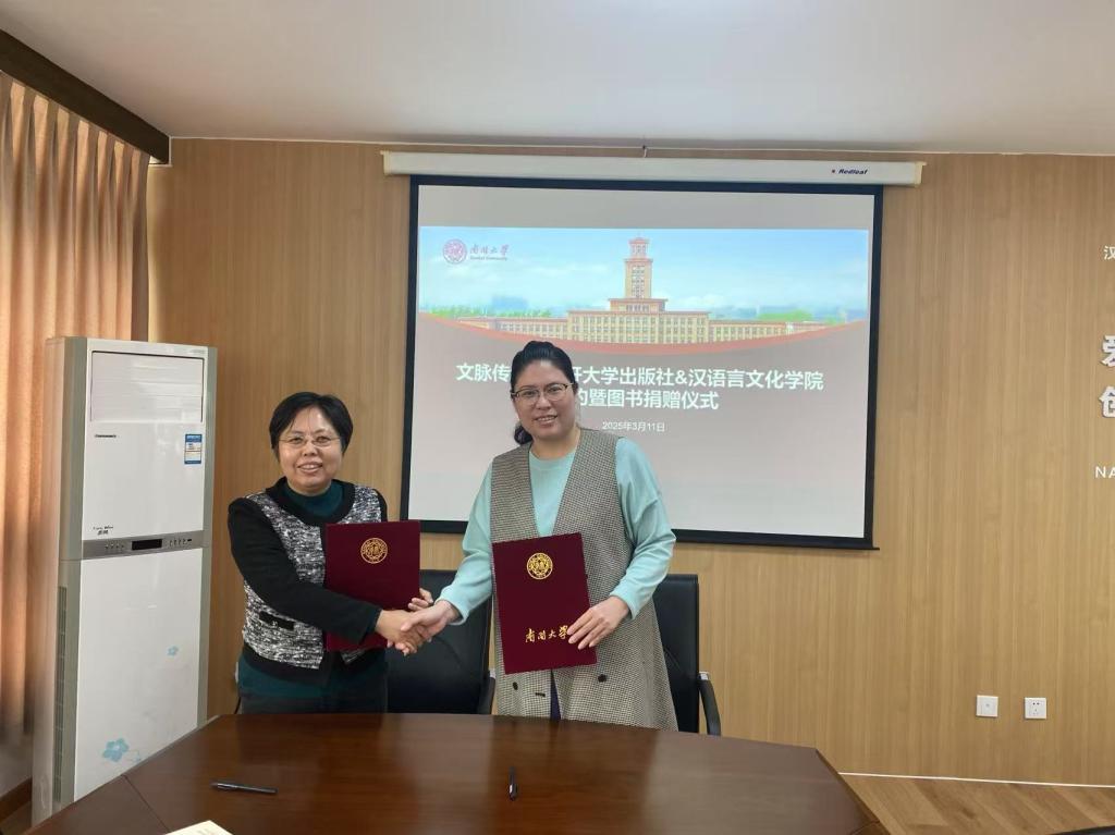 王康社长代表出版社向太阳成集团tyc151cc捐赠《张伯苓全集》、《迦陵词》、《文明对话》等图书28册,并捐赠《益世报》(全136册)的使用权,捐赠的书籍涵盖历史、文学和艺术等诸多学科。王康社长表示,太阳成集团tyc151cc与太阳成集团tyc151cc官网出版社具有良好的合作基础,希望通过本次捐赠,与太阳成集团tyc151cc进一步深化合作,为广大教师提供更多出版信息与扶持,为公司团队建设贡献力量。