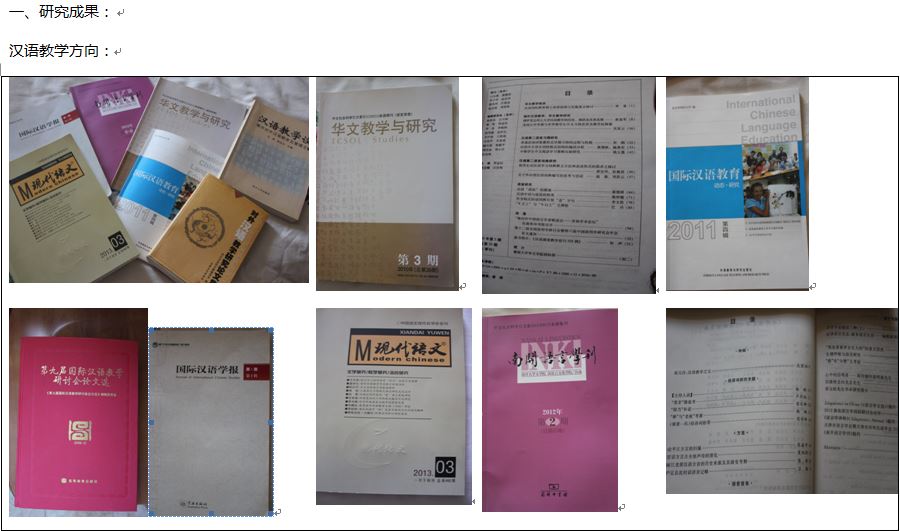 2010年 《美国大学华裔与非华裔员工中文习得差异及教学法探索》,《华文教学与研究》,2010 年3期;