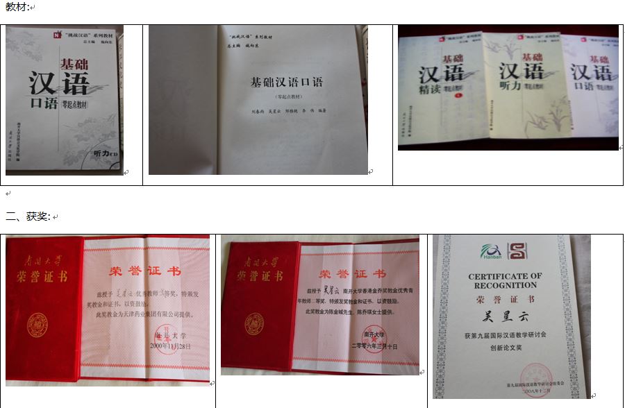 2008年 《美国大学华裔与非华裔员工汉语习得特点及其教学法探索》,第九届国际汉语教学研讨会“创新论文奖”